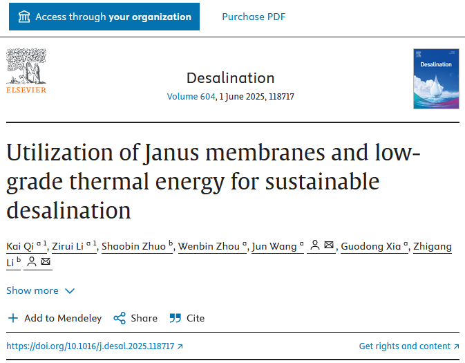 2025年2月,北京工業大學與香港科技大學聯合團隊在國際知名的海水淡化領域學術期刊 Desalination 上發表了題為 Utilization of Janus membranes and low-grade thermal energy for sustainable desalination 的創新研究成果,以 “Janus 膜 + 低品位熱能” 耦合技術給出創新方案。其中,邁博瑞疏水PTFE膜正是構建該 Janus 膜的關鍵基底材料。